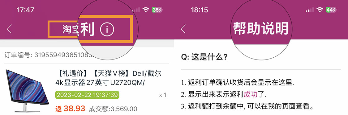 b. 独有的订单跟踪系统, 让亲第一时间可以确认是否可以获得返利.