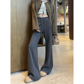 【优惠价】灰色羊毛喇叭裤女秋冬新款高腰显瘦修身瑜伽裤微喇垂感糯米运动裤