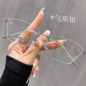 【优惠价】超轻纯钛猫眼无框眼镜女近视可配度数无边异形防蓝光抗辐射眼睛架