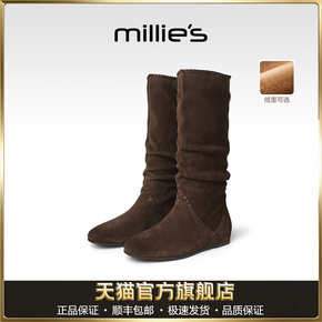 【优惠价】millies妙丽加绒显瘦长靴女靴2025冬季新款复古真皮堆