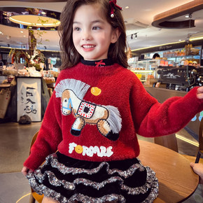 米米哈罗女童毛衣冬装2026年新款儿童马年新款圣诞红色洋气上衣
