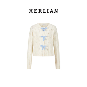 HERLIAN 2025冬季新品蝴蝶结装饰针织开衫女士