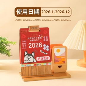 台历2026年新款创意商务多功能笔筒可收纳木质台历办公桌面摆件公司企业