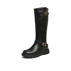 【优惠价】百思图冬新款扣带加绒厚底骑士靴小个子高筒靴女长靴W0819D