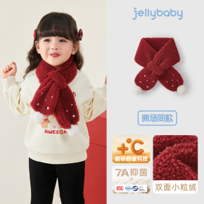 【优惠价】[抗菌锁温]女童红色围巾婴儿星星毛绒脖套冬季可爱冬装宝宝围脖