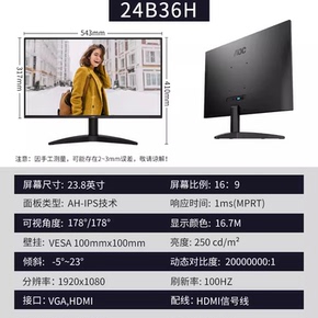 AOC 21.5/24/27B36H液晶显示器24/27英寸台式电 黑