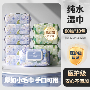 【优惠价】植护纯水湿巾纸婴儿成人手口专研清洁湿纸巾家庭用实惠装大包80