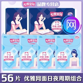 七度空间卫生巾优雅净爽网面超薄夜用加长338mm组合6包56片姨妈巾