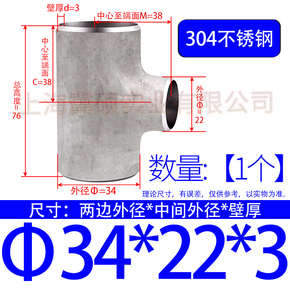 国标304/316L不锈钢三通焊接三通无缝冲压等径异径三通Φ8
