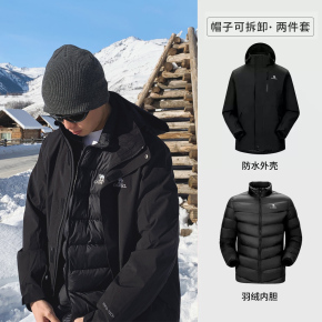 【优惠价】骆驼3514冲锋衣女三合一羽绒服黑色外套男户外防风防水旅游登