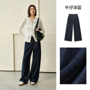 【优惠价】太平鸟高腰弯刀牛仔裤25秋冬新款宽松显瘦茧型香蕉阔腿牛仔裤女