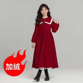 女童洋气红色连衣裙秋冬高级感中大童女孩公主裙加绒新年礼服裙子