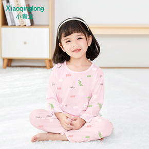 小青龙春夏季薄款竹纤维长袖儿童睡衣男童女童宝宝空调服中大童秋