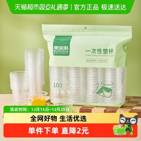 美宝琳一次性杯子100只商用加厚航空杯塑料胶杯透明水杯家用批发