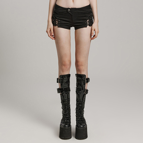 机车朋克牛仔超短裤走光超露女辣妹低腰裤黑色紧身热裤露屁股