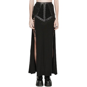 哥特风性感开叉半身裙女2024新款高腰显瘦后妈包臀裙黑色紧身长裙