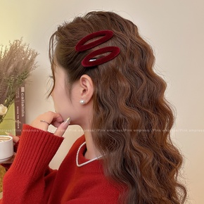 椭圆植绒发夹女2025新款高级感侧边刘海夹前额碎发鸭嘴夹发卡发饰