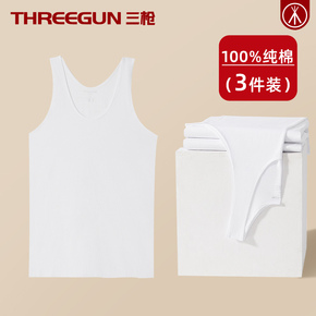 三枪100%正宗新疆棉男士背心全棉无袖汗衫青年运动打底纯棉内衣夏
