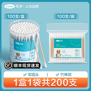 可孚医用棉签双头掏耳朵化妆清洁一次性家用卫生棉棒脱脂棉竹棒