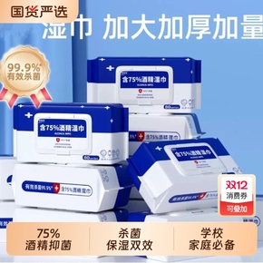 家用酒精湿巾含75度带盖酒精湿巾消毒除菌清洁抑菌清洁抽取式湿巾