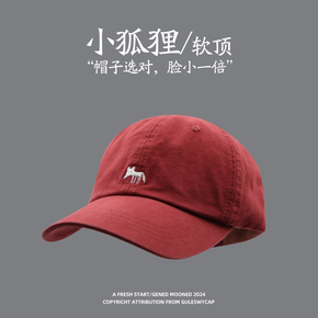 GULESWYCAP夏季小狐狸刺绣帽子女宽檐显脸小百搭复古鸭舌棒球帽男