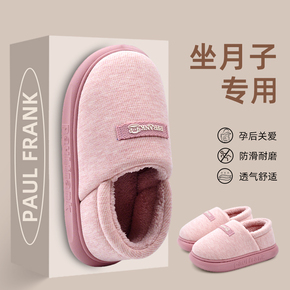大嘴猴月子鞋秋冬包跟坐月子专用产妇棉拖鞋11月份加绒厚底棉鞋女