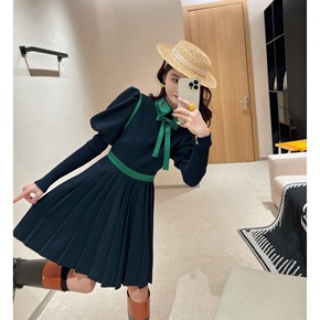 NancyCavally纯手工缝制压线 可拆卸蝴蝶结百褶泡泡袖羊毛连