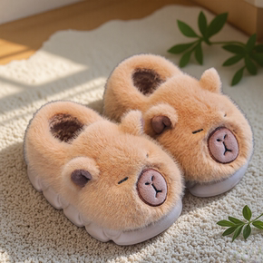 卡皮巴拉儿童棉拖鞋男童冬室内居家棉鞋宝宝毛毛绒包跟毛拖鞋男孩