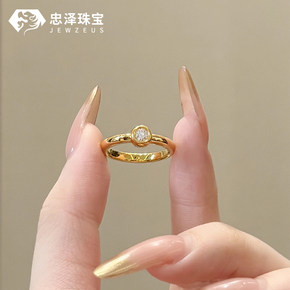 5D硬金黄金泡泡戒指女999足金点钻镶嵌高级感纯金指环送女友礼物