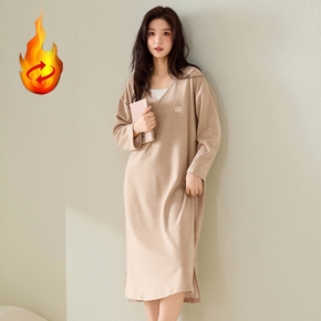 睡裙女秋冬季德绒长袖连衣裙2025新款保暖舒适羊绒蚕丝柔软家居服