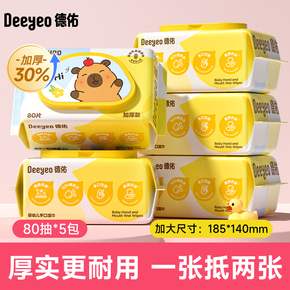 【优惠价】德佑婴儿湿巾卡皮巴拉小学生湿纸巾手口屁专用幼儿园实惠装80抽
