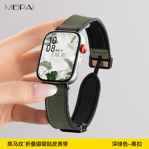 美派适用华为FIT4折叠磁吸贴片表带华为fit4pro疯马纹女款手表带