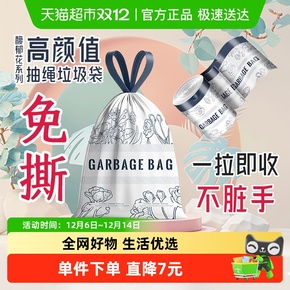 利得免撕印花抽绳垃圾袋加厚厨房家用馥郁花45*50cm*100只双面2