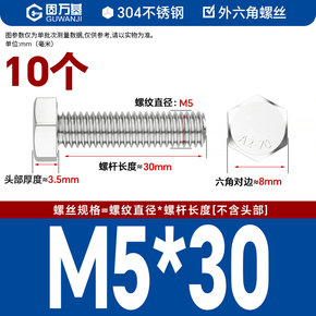 【优惠价】304不锈钢外六角螺丝加长外六角螺栓3mm螺丝钉大全M4M5