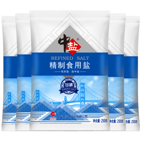 中盐加碘精制食用盐250g*5包食盐小包装家用细盐食用井矿盐