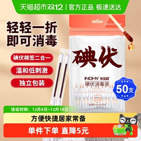 海氏海诺医用碘伏棉签棉球新生婴儿肚脐消毒棉棒非酒精凑单50支