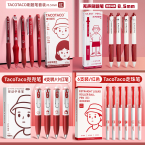 TacoTaco红笔套装红色中性笔高颜值学生用按动式老师专用批改作业i