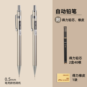 得力文具自动铅笔小学生初中生学习金属重手感不断芯儿童男女生按动铅笔活动