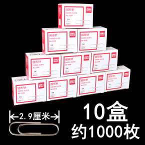 【10盒】得力金属回形针办公用品曲别针回形针大号回型针回行针回形夹