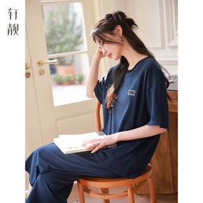 【优惠价】轩靓【带胸垫】柔软睡衣女士夏纯棉半袖七分裤显白宽松家居服套装