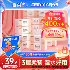 洁柔纸巾无香可湿水抽纸面巾纸130抽24包家用实惠整箱卫生餐巾纸