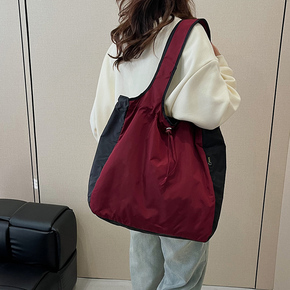 可折叠购物袋双层手提单肩包超市环保收纳袋子网兜买菜包可束袋口