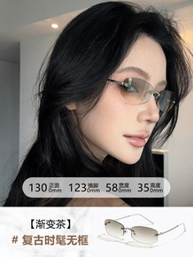 【优惠价】复古无框Y2k墨镜女高级感猫眼小框欧美风防紫外线太阳眼镜方圆