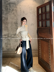 GV大白哥 智系长期主义 中高领美丽诺羊毛针织修身系带打底上衣女