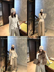 GV大白哥 极简设计 侧结收腰圆领绒绒针织上衣秋冬新款百搭显瘦女