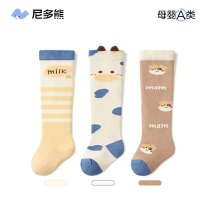 尼多熊婴儿长筒袜秋冬棉袜a类0-3月宝宝新生儿过膝长袜不勒腿春秋