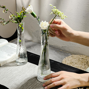 ins风高级感家用轻奢水培花瓶玻璃透明插花玫瑰鲜花客厅餐桌摆件