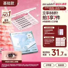 空气无感下睫毛!超自然假睫毛女仿真鱼尾太阳花透明梗新手胶水款