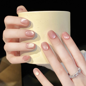 粉晶猫眼手工穿戴甲短款高级感豆豆美甲成品假指甲贴片2025新年款
