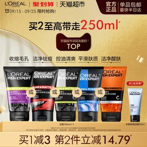 欧莱雅炭爽双效控油水能洁面膏洗面奶深层清洁收缩毛孔男士护肤